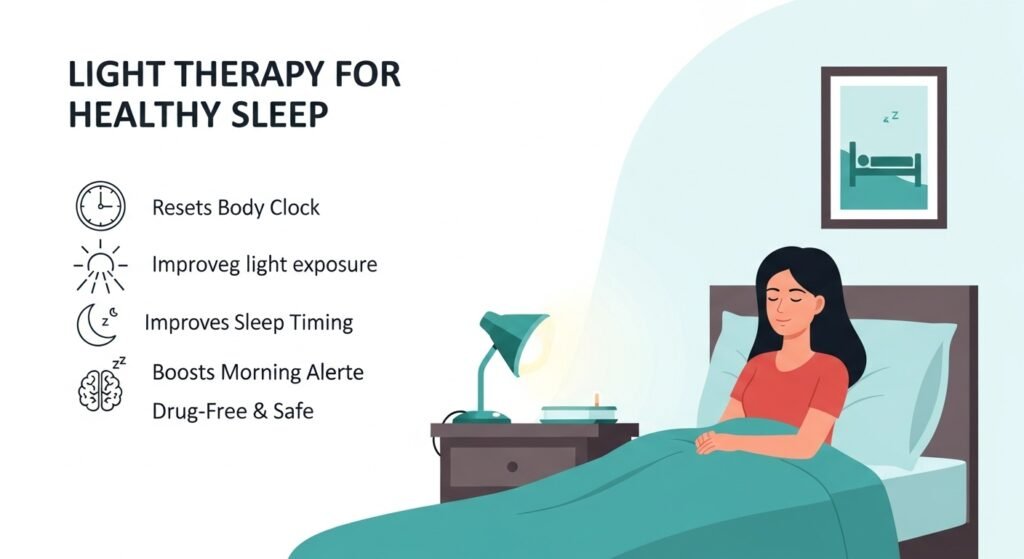 Light therapy involves controlled exposure to bright white light at specific times of the day to regulate the brain’s sleep–wake rhythm.